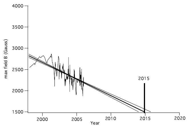 Leif, has this Livingston and Penn graph showing the extrapolation to 2015 been updated anywhere to include data since 2006?