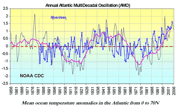 Here is a link comparing Aberdeen mean annual temperature anomalies to the Atlantic Multidecadal Oscillation AMO-Aberdeen – a much better correlation than with CO2.
