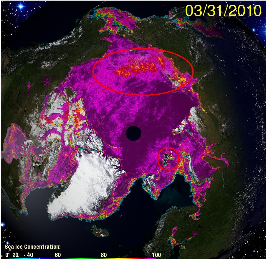 This has very little implication for what will happen this summer, or for the long-term trends, since the Bering Sea ice is thin and will melt completely well before the peak summer season.