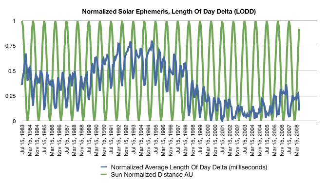 Second, what you call the “buzzsaw effect” are the seasonal changes in the LOD which are driven by the seal level. As a result, they fit very well to the “buzzsaw effect” of the seasonal changes in sea level, which in part is why the correlation is so good. When the sea level goes up and down with the seasons, the LOD goes down and up in the same way and with the same timing. Given the theoretical physical connection between the two, this makes perfect sense. So I don’t think you can just “remove the buzzsaw effect” from one and not the other.