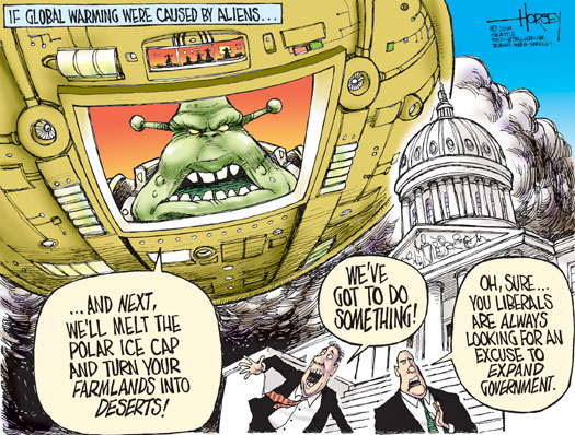 My topic today sounds humorous but unfortunately I am serious. I am going to argue that extraterrestrials lie behind global warming. Or to speak more precisely, I will argue that a belief in extraterrestrials has paved the way, in a progression of steps, to a belief in global warming.