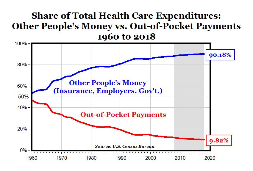 The only reason that people’s individual behaviors and choices can inflict large societal costs and hence be used to to justify greatly enhanced monitoring, hectoring, and regulation by exponentially burgeoning governmental organizations is because the false notion that people have a “right” to expect others to bear the cost of those bad choices has been systematically ingrained in the population. In the the last half century we have moved from a point where most people covered as much of their personal healthcare costs out-of -pocket as was provided by others to where in the not distant future more than 90% of those costs will be on someone else’s dime.