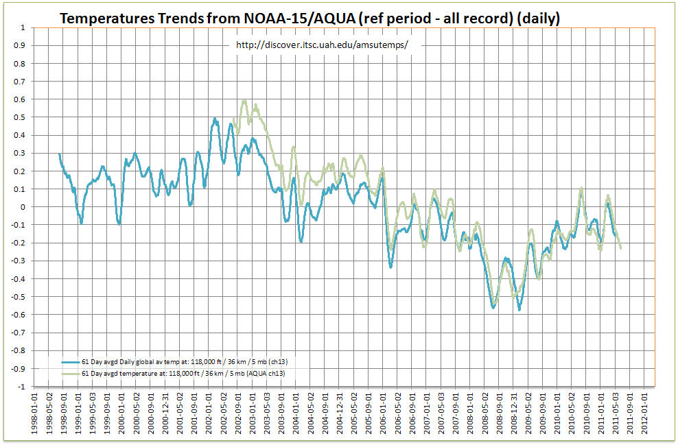 Although the current 2011 AMSU is about 0.56 cooler than 2010, it will tick up about 0.2DegC over the next few of days.