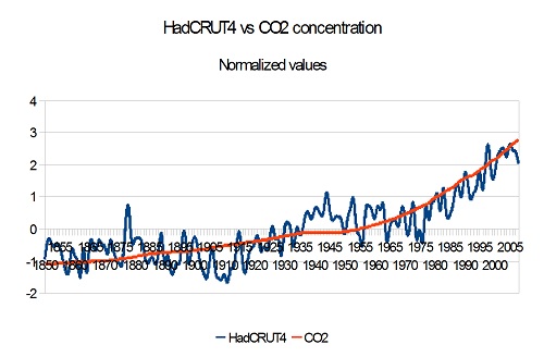 In the case of CO2 and temperatures, we expect: