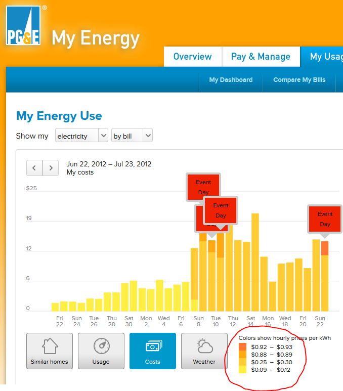 But in any case, what kind of heartless bastards charge you more for something when you really need it? Because with “Time Of Use” pricing, when Anthony’s wife and kids are suffering in the scorching heat in Chico and really need the aircon, Pacific Gas And Electric (PG&E) and the California Public Utilities Commission say “Fine, you folks can turn on your air conditioners … but it will cost you almost a dollar a kilowatt to cool down.”
