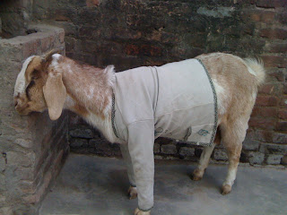 Please note I have actually put a sweater on more than one of my goats photo now I am crossing my goats with cashmeres so they can grow their own cashmere sweaters. Much easier.