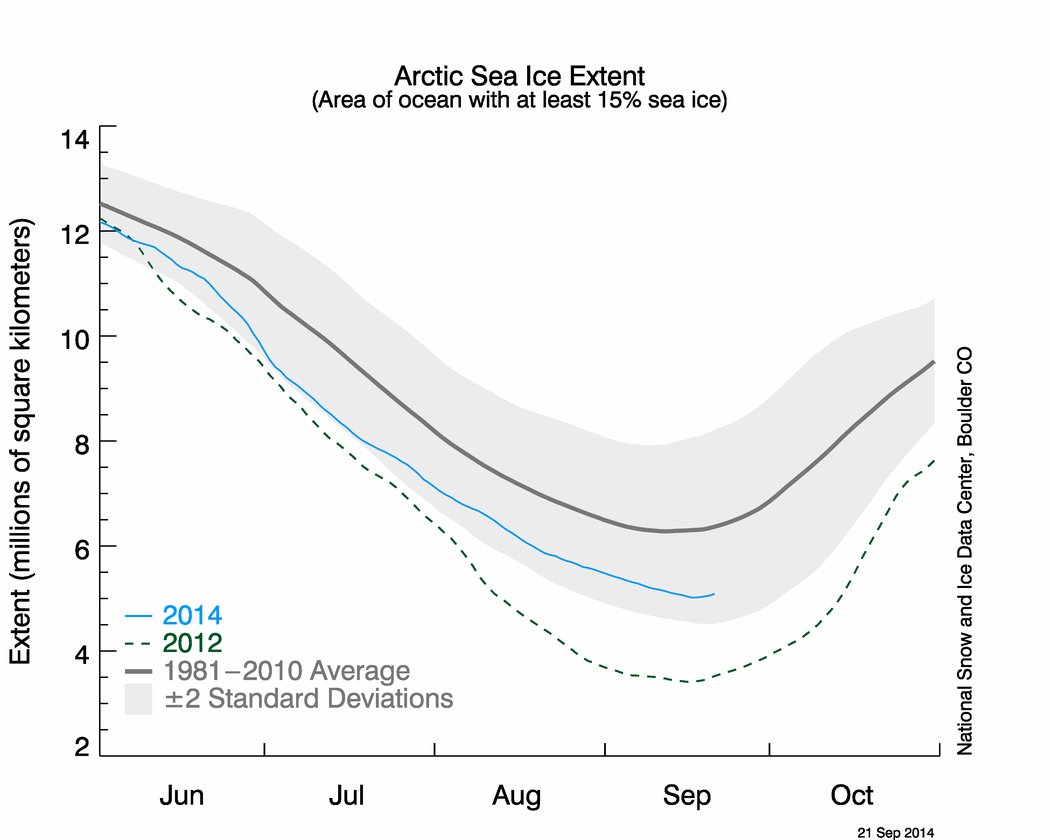 From NSIDC: Arctic sea ice reaches minimum extent for 2014 September 22, 2014