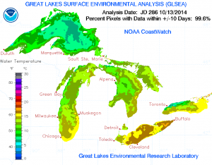 Meteorologist Mark Torregrossa writes on Michigan Live about the lingering effect of historic ice extent last winter in the Great Lakes and late ice melt this summer due to that … Continue reading Water temperature of the Great Lakes is over 6 degrees colder than last year, 3 degrees colder than normal