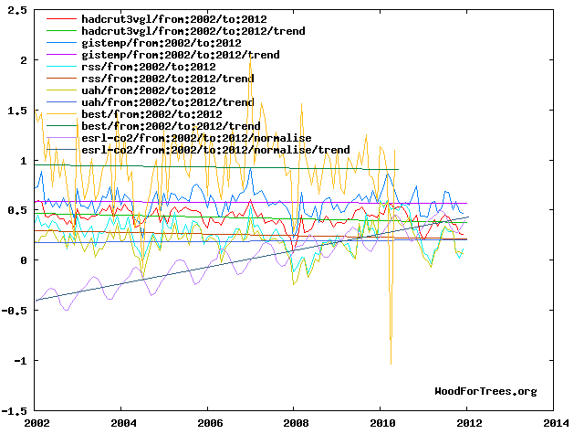 But, why if that is true, why are we in a pause, when there’s been an increase in CO2 the last decade and no correlation with temperature?