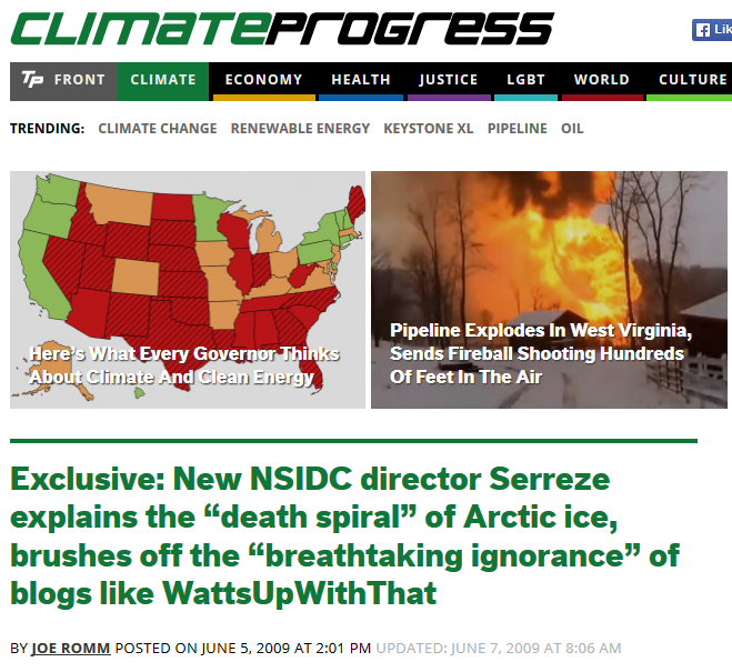 To my knowledge, Dr. Serreze has never publicly corrected the National Geographic article claim of 2012 being the ice-free year that wasn’t, suggesting he endorsed the idea at the time.