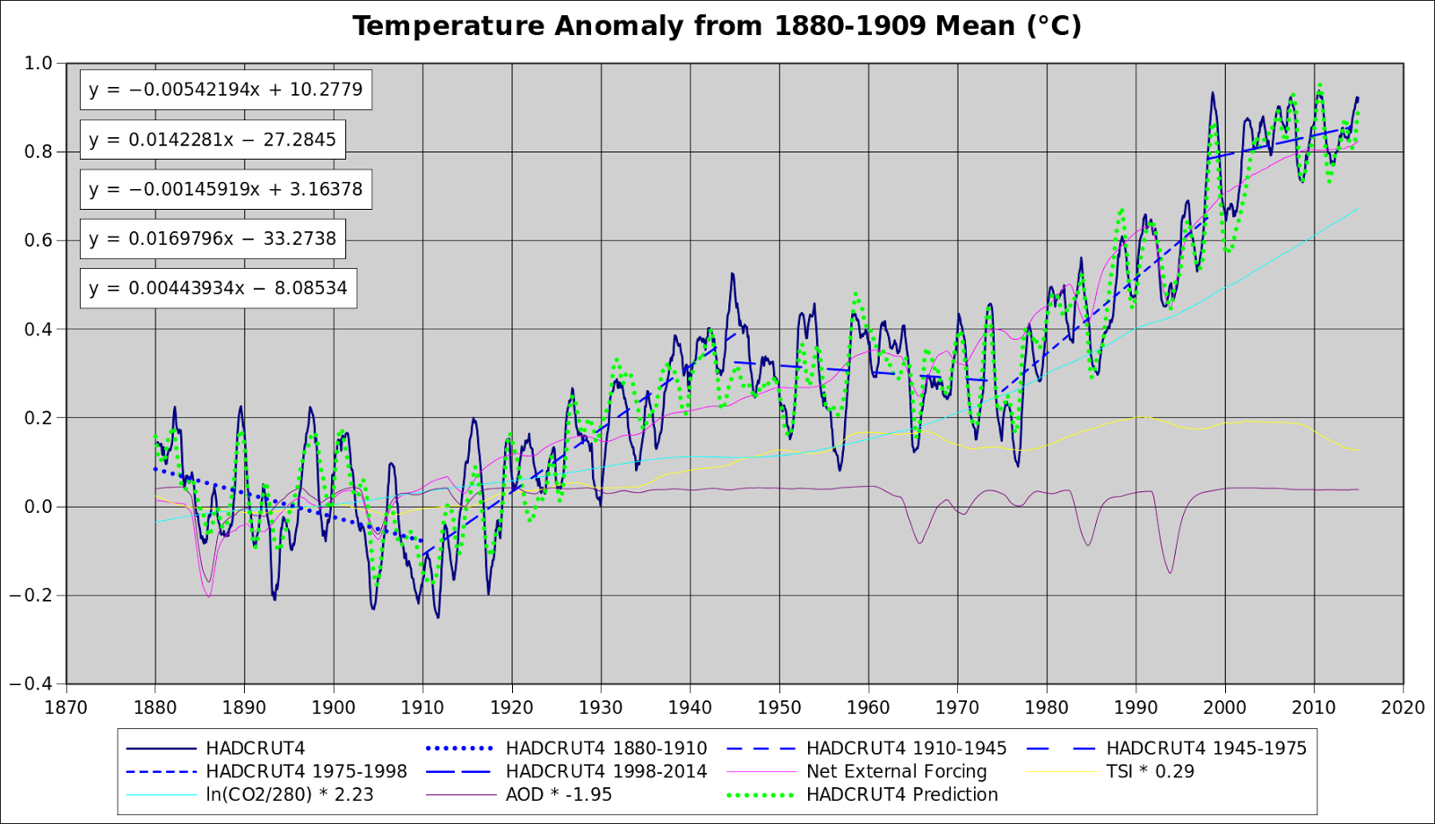 And if the “radiative forcing” is supposed to have been perfectly working over the 1975-1997 time span, with no delay, why did it stall afterwards?