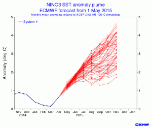 Wow! ECMWF Long-Term Weather Model Is Predicting a Super El Niño and I Mean Super Guest Post by Bob Tisdale I was notified today of the rather remarkable plume of … Continue reading Forecast super El Niño for fall nearly double the strength of 1998 Super El Niño