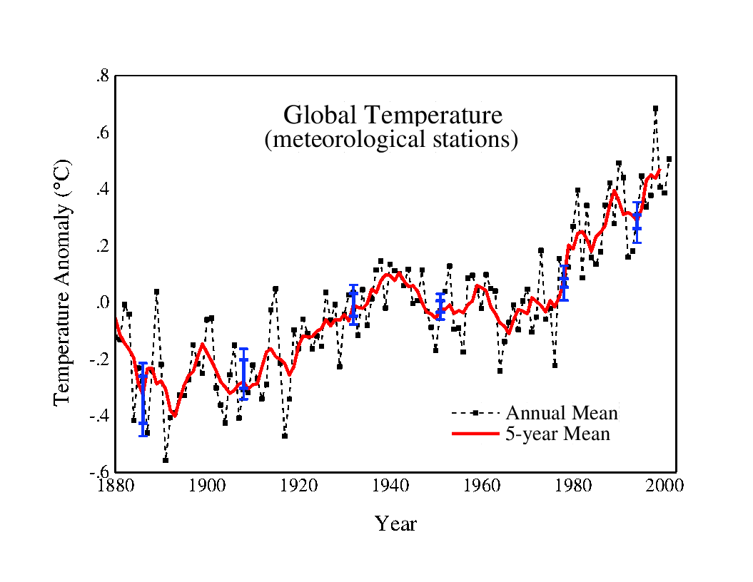 It can be difficult to work out the Earth’s rate of warming. There are large variations in temperature from month to month, and different rates can be calculated depending upon the time interval and the end points chosen. A reasonable estimate can be made for long time intervals (100 years for example), but it would be useful if we could calculate the rate of warming for medium or short intervals. This would allow us to determine whether the rate of warming was increasing, decreasing, or staying the same.
