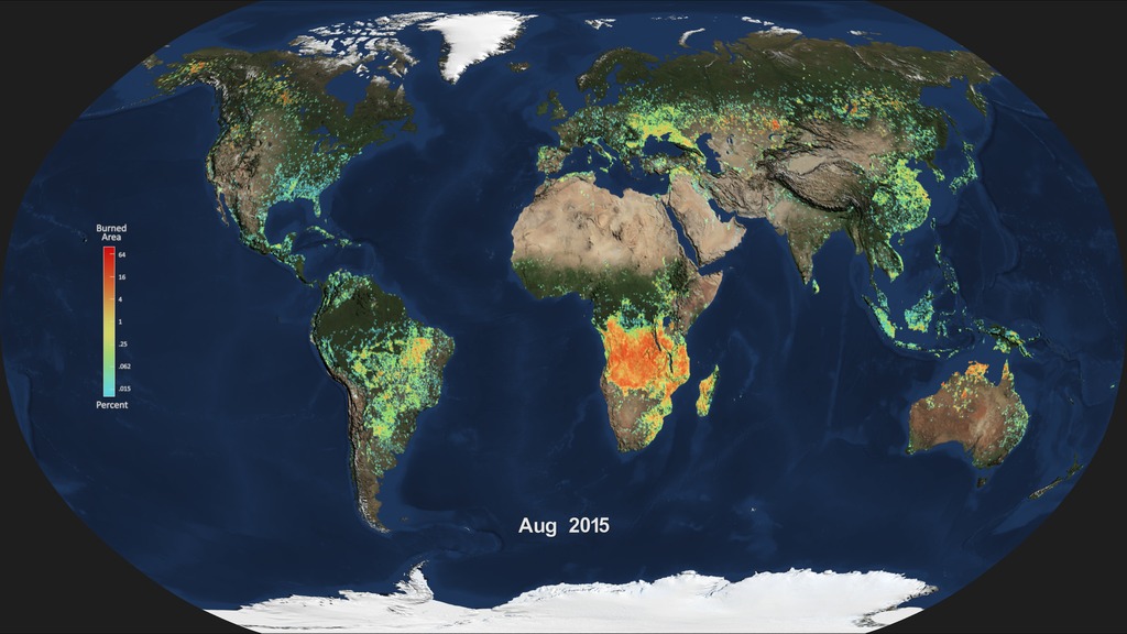 It is obvious from the last NASA picture that the equatorial/southern half of Africa is virtually the only place that is burning up and this is not due to it being hot but rather huge population surges that are doing slash/burn agriculture.