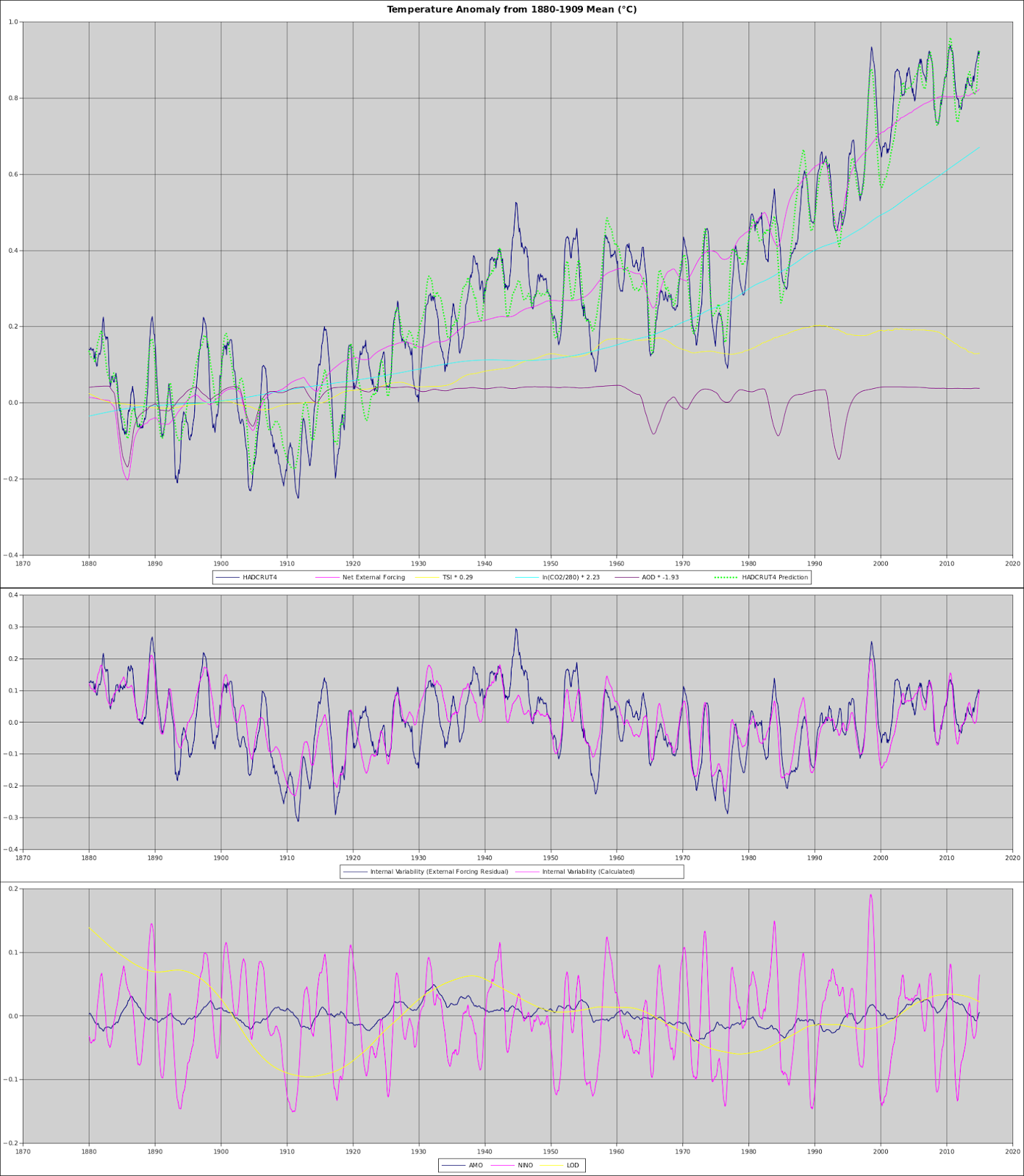 The letter writers go on to their only unambiguously correct claim: namely, that the IPCC does not declare that the science is settled. They then present the iconic statement if the IPCC’s Working Group 1 (the one dealing with the scientific assessment – as opposed to the remaining 2 working groups that generally begin with worst case scenarios in order to claim impacts and design mitigation strategies): “The IPCC report presents strong evidence that more than half of the climate change seen in recent decades is human-driven.” One may readily disagree with the claim of ‘strong evidence’ since the claim (based on model results) depends on the assumption that models correctly display natural internal variability which very clearly they don’t.