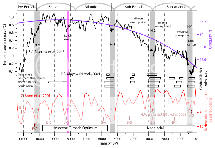 My guess is several big solar minimums in a row have a small but noticeable impact.