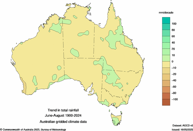 That is true however for the maximum available trend period 1900 – 2015, the area affected is the marginal coastal area of SW Western Australia.