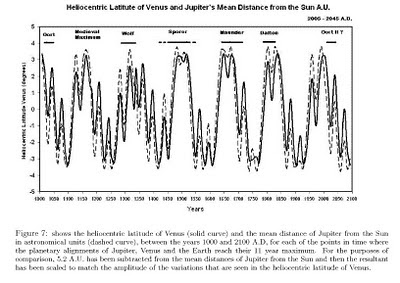 For example – the heliocentric latitude of Venus (i.e. angle above or below the plane of the Ecliptic as seen from the Sun) is beautifully linked in resonance to the mean distance of Jupiter from the Sun – provided that they are observed at intervals of 11 year intervals set by the alignment cycles of Venus, the Earth and Jupiter.