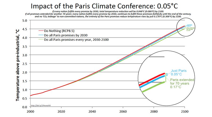 It’s only virtue signaling as the graph above only shows the effects of the Treaty if CO2 has the effects they claim. It is more likely that CO2’s effects are negligible and undetectable in the first place and all three lines will be on top of each other.