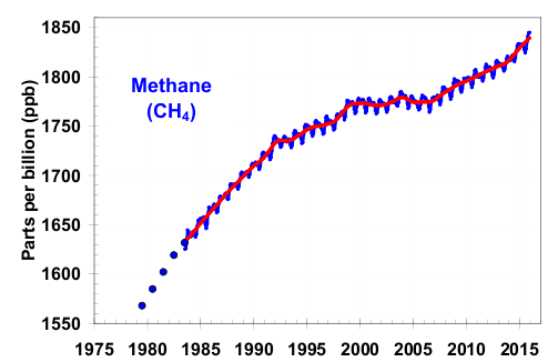 Any discussion of methane needs to be against the backdrop of how much its contribution as a greenhouse gas actually is. At less than 2 ppm with an annual increase of less than 0.01 ppm it’s going to run up global temperatures exactly how much by 2100? The so-called mainstream media never tells us and neither does anyone else.