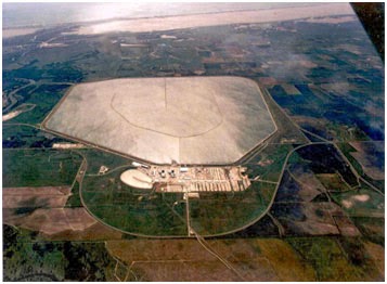 A photo of the STNP plant, the artificial cooling pond, and the Gulf of Mexico. Texas’ Colorado river at the left.