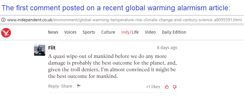 You display scientific illiteracy by d@nying that climate science literature, which you must not have read, is rife with catastrophic and dangerous scenarios. It’s the whole basis of the corrupt enterprise, which has so distorted science. It’s all about “tipping points”, “runaway global warming and climate change” and the dangers and threats of this or that catastrophic consequence of GW and CC. I don’t know how you could have missed it.