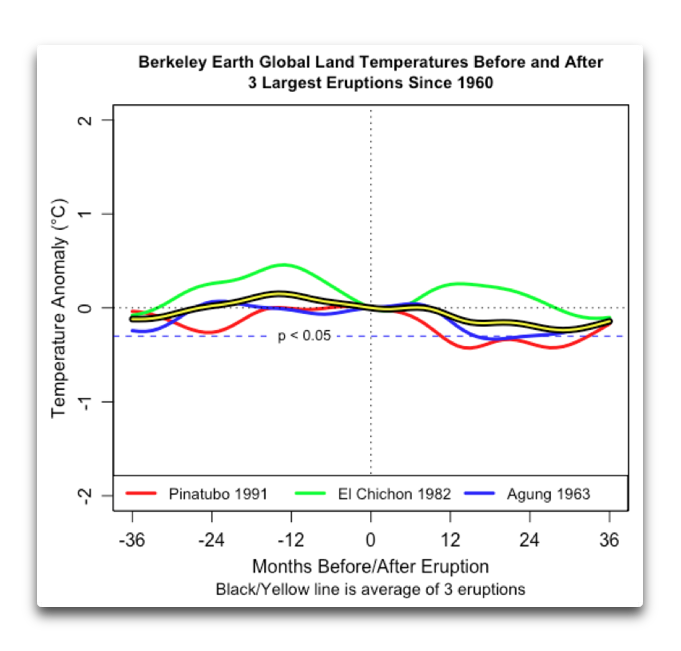 NOTE 2: Data Sources. The Berkeley Earth data is here. The volcanic eruption data is from the Smithsonian. Enjoy.