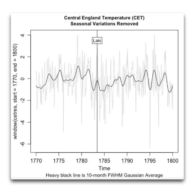 Move your Laki line to June 1783 and it will be obvious even to your blinkered gaze. And that’s in global data. Look at the records in Eurasia and North America for that year.