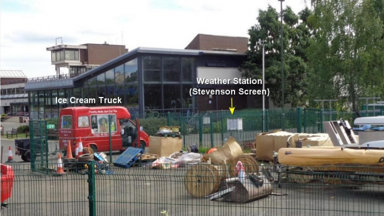 From the “I scream, you scream, we all scream for higher temperatures” department. Yesterday, Paul Homewood and I went on a collaborative search to find the weather station at Strathclyde Park … Continue reading Friday Funny: Scottish “record high temperature” caused by Ice Cream Truck