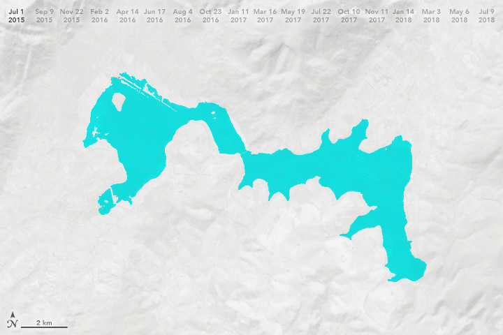 Re: “The animation above, based on Landsat imagery, shows the condition of the reservoir at two month intervals between 2015 and 2018.”
