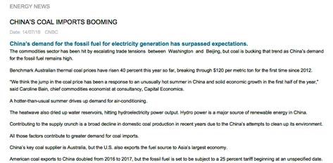 I am certain Trump would love to sell coal to China and China would like to buy it. Problem is the greens have prevented terminals on the West Coast from being built.