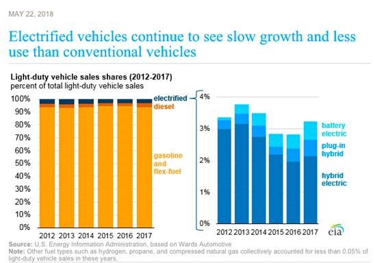 However EIA data shows Electric Vehicles continue to represent a very small market for total global vehicle sales and have less than a 4% market share of world vehicle sale markets.