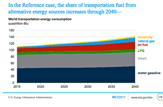 The reality is that globally EV energy use represents lass than 1% of the transportation energy use sector which is completely dominated by use of liquid fuels.