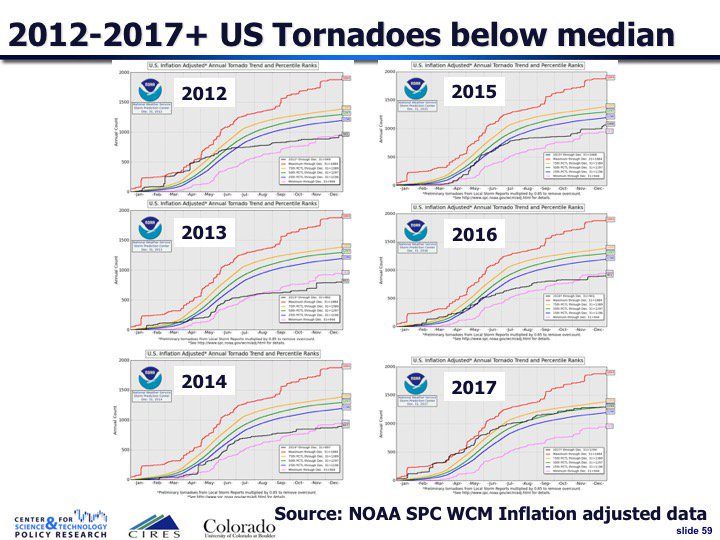 Still not sure why tornados are quantified in terms of financial effect, even normalized dollars. It requires that in given season on average they hit the same distribution of high value and low value targets. Wouldn’t it just be better to monitor frequency and power?