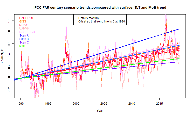 As a subcomment to (C), note that about 35% of all the increase in atmospheric CO2 since 1958 (Mauna Loa) occurred this century. BUT except for the now cooled 2015-16 El Nino blip, there has been essentially no warming this century.