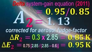 [Fig 13.] How the aerosol fudge-factor artificially hikes the system-gain factor A.