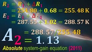 The system-gain factor, using the delta-value form of the system-gain equation that is at present universal in official climatology, is the ratio of equilibrium to reference sensitivity: i.e. 1.5. Since reference sensitivity to doubled CO2, derived from CMIP5 models’ data in Andrews (2012), is 1.04 K, Charney sensitivity is 1.5 x 1.04 or 1.55 K.