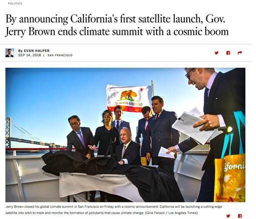 Gov. Brown ended his little climate soiree by announcing that the state will launch its own satellite to investigate climate change but as was everything else in this “summit” this scheme was just more hype without any specifics as noted in a Times article.