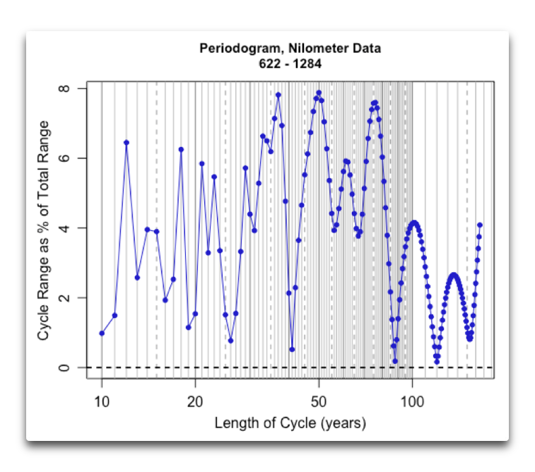 Don’t like CEEMD? OK, here’s a Fourier periodogram of the same Nilometer data;