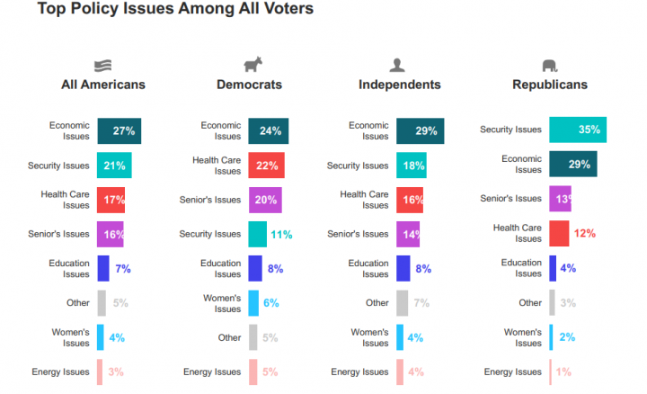 Health care and the economy consistently top polls of key issues and social security, immigration and guns usually perform well too.