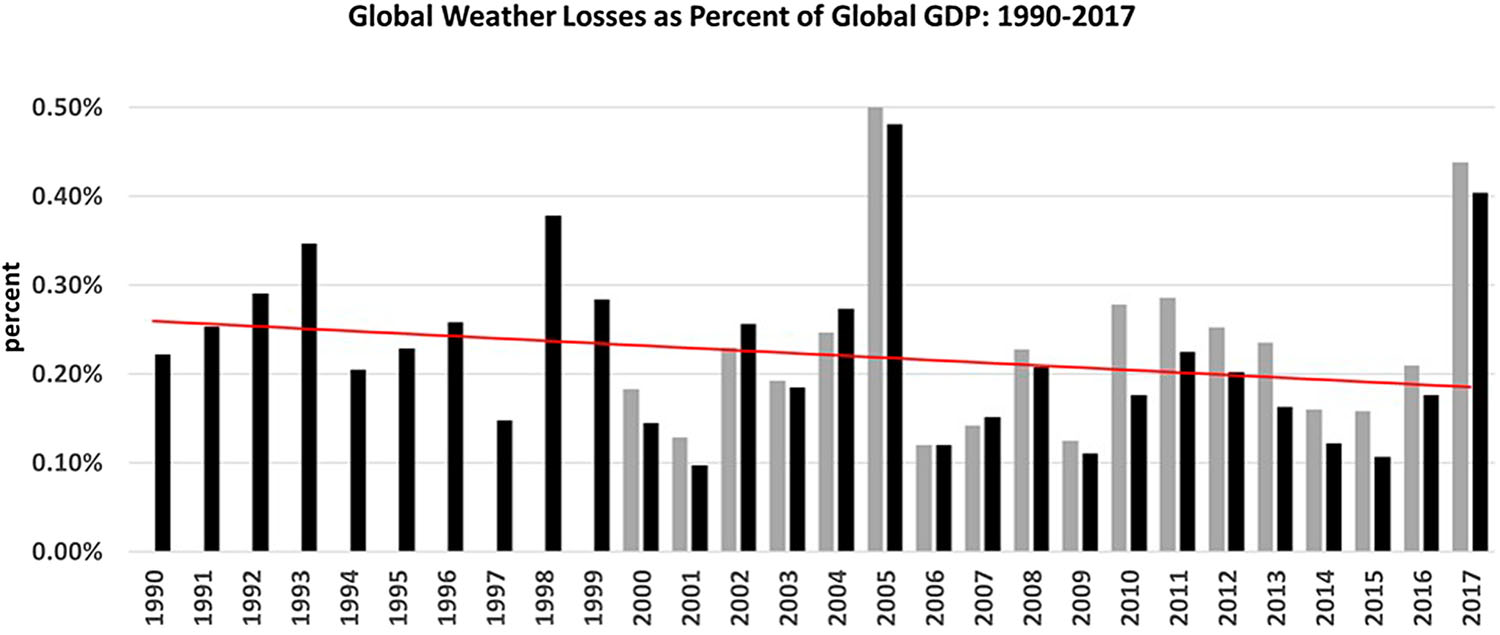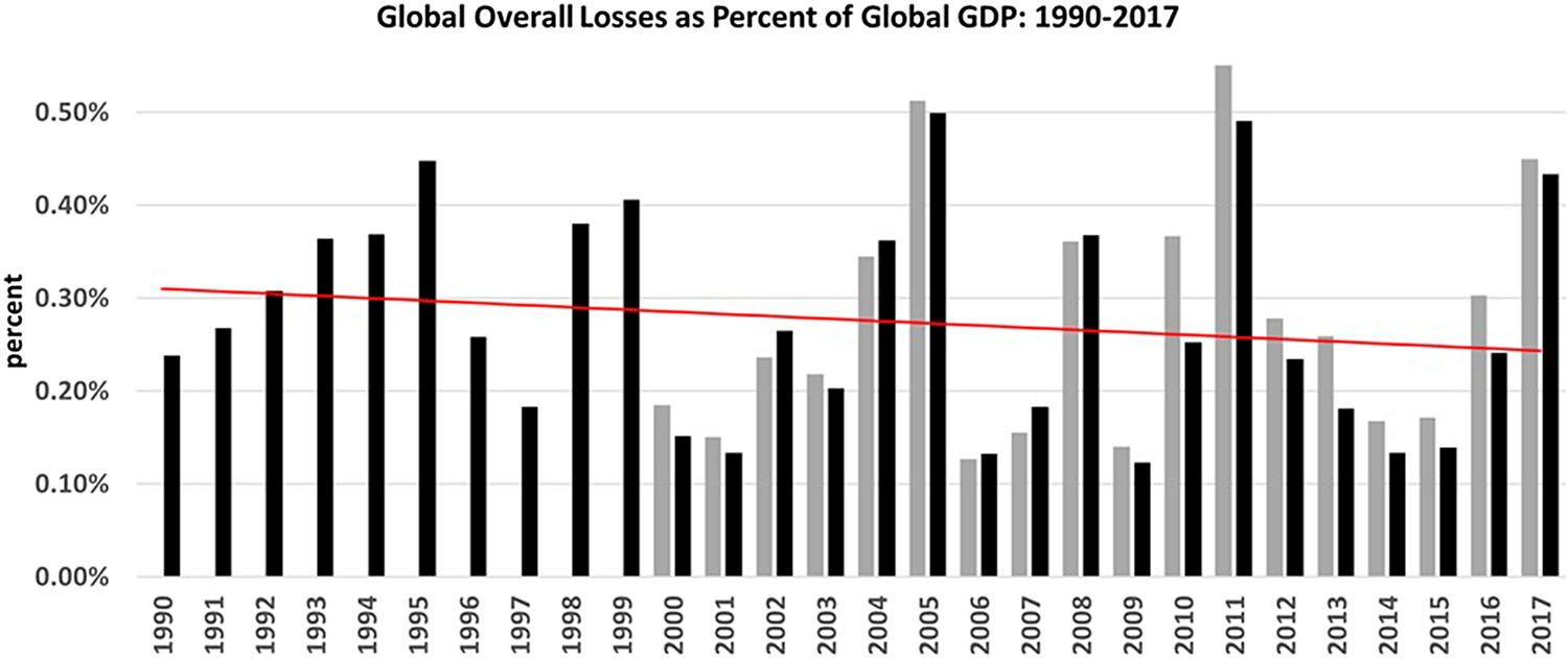 Global overall/weather loses as percent of global GDP: 1990-2017