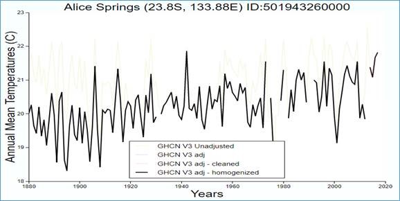 Figure 4 – Latest GHCN v3 Adjusted and homogenized for Alice Spring. Image reproduced modified after data.giss.nasa.gov.