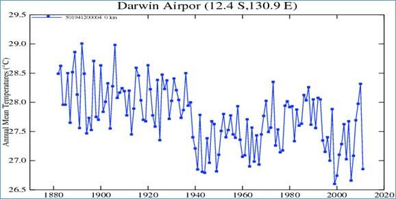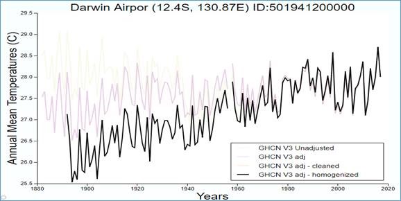 Figure 3 – Latest GHCN v3 Adjusted and homogenized for Darwin. Image reproduced modified after data.giss.nasa.gov.