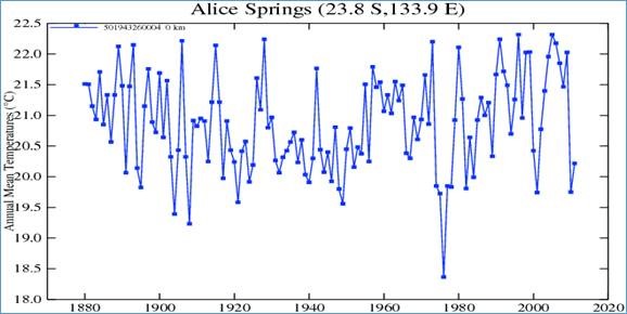 Figure 2 –sample long-term-trend thermometer results (Alice Spring, NT, Australia)