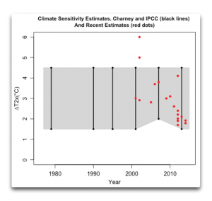 Why is climate science stagnating? One thing we have seen over the years, in Climate Science nobody ever loses. As long as your estimated climate sensitivity is above 1.5C and not too much higher than 4.5C, your estimate will be accepted by the community as reasonable. If your sensitivity estimate is less than 1.5C, you’re a denier. If you make a truly ridiculous claim, such as predicting an ice free Arctic in the next couple of years, you might attract a pithy comment from Gavin Schmidt. But overall everyone’s career is safe, providing you churn out lots of papers which conform to the community view of what your results should be. There is no sense of urgency, no sense of concern, that the field of climate science is not advancing.