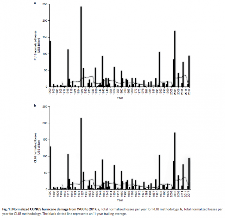 Weinkle et al. 2018.Normalized hurricane damage in the continental United States 1900–2017, Nature Sustainability. https://www.nature.com/articles/s41893-018-0165-2