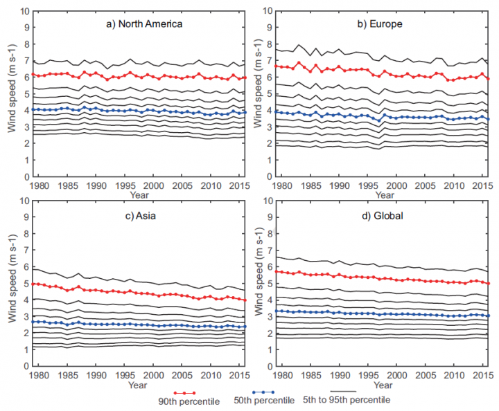 This looks like we will need to add ten percent more Wind turbines every ten years to each wind farm just to keep up with decrease in wind due to …… Climate Change. This is going to make the cost of these unreliables even worse than thought. At this rate the decrease in wind power w. ill exceed the projected increase in efficiency I keep reading about. More and more like a lost cause.