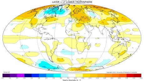From the University of Alabama, Huntsville. Jan 2, 2019 Global Temperature Report: December 2018 Global climate trend since Dec. 1 1978: +0.13 C per decade December 2018 Temperatures (preliminary) … Continue reading Global Cooling since 2016 – 2018 was the 6th warmest year in the past 40 years