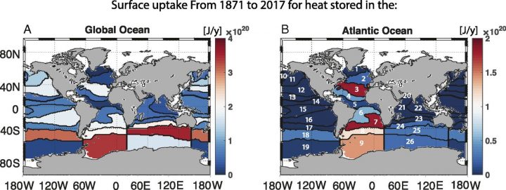 The multi-disciplinary team of scientists have published estimates in PNAS, that global warming of the oceans of 436 x 1021 Joules has occurred from 1871 to present (roughly 1000 times annual worldwide human primary energy consumption) and that comparable warming happened over the periods 1920-1945 and 1990-2015.