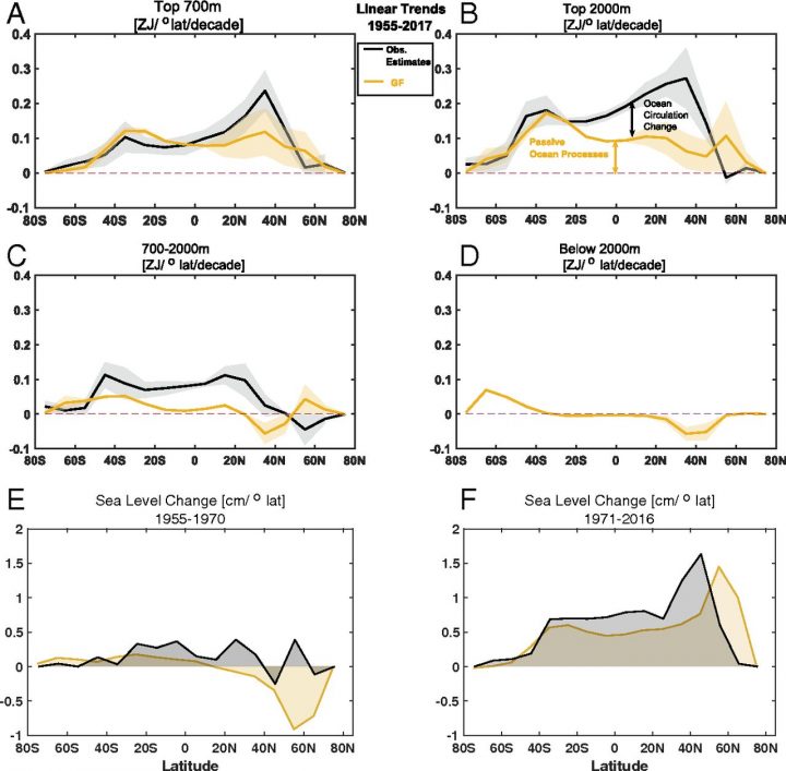 The new estimate suggests that in the last 60 years up to half the observed warming and associated sea level rise in low- and mid- latitudes of the Atlantic Ocean is due to changes in ocean circulation. During this period, more heat has accumulated at lower latitudes than would have if circulation were not changing.
